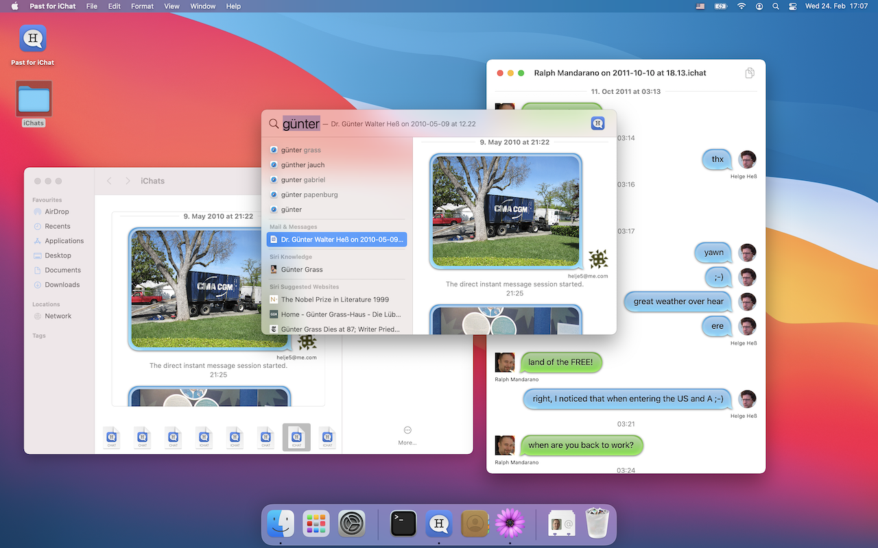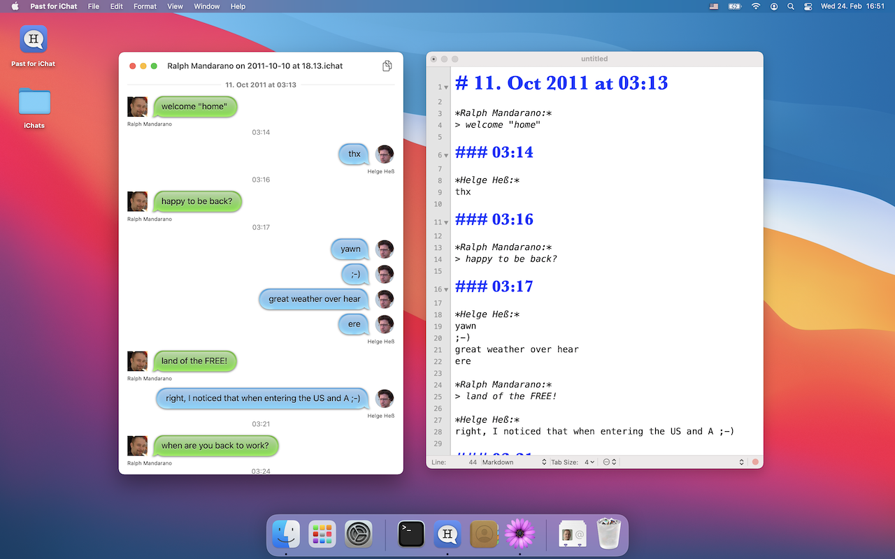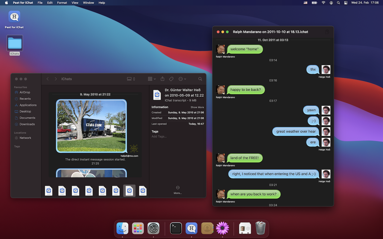 The Past for iChat is a small macOS Big Sur application to open old iChat logs (.chat and .ichat files). Interested in letting us write an app for you? Contact us!